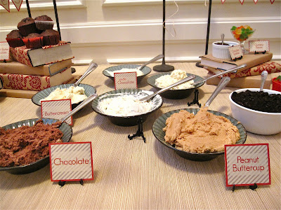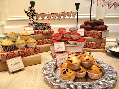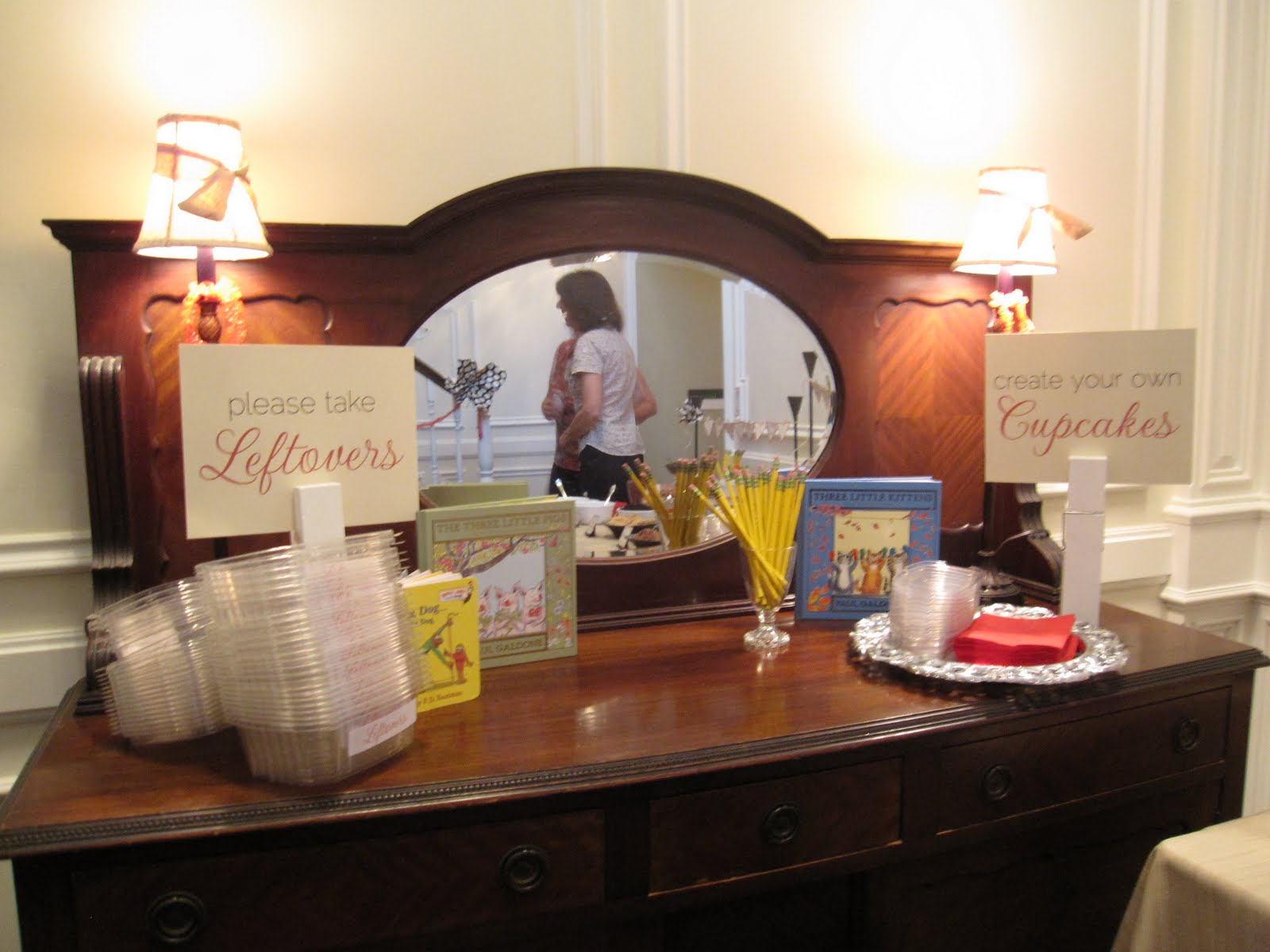 we created a fun cupcake bar! we had 5 different types of cupcakes, 6 different frostings and tons of toppings! the guests could customize their cupcake to their liking! and, we provided plastic boxes for leftovers to take home!